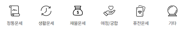 오늘의 운세, 정통운세, 생활운세, 재물운세, 애정/궁합, 퓨전운세 등을