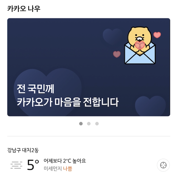 여기에서 전국민께 카카오가 마음을 전합니다를 클릭합니다.